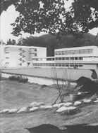 27 Primarschulanlage Untermosen. Links der Klassentrakt, Pausenplatz, rechts der Spezialtrakt mit Handarbeitsräumen und Mehrzwecksaal.