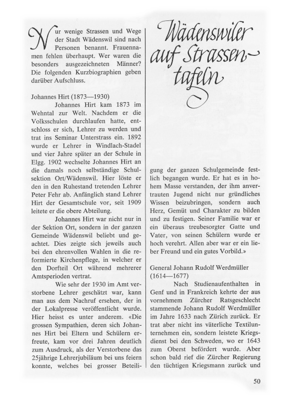 1874 rief Julius Hauser mit einigen Gesinnungsfreunden die Freie Schule Wädenswil ins Leben. Sie wurde im alten Schützenhaus am Rotweg (am Standort des heutigen Sekundarschulhauses Fuhr) eröffnet, wenig später in die umgebaute Scheune des Weinbauern Julius Hauser ob der Kirche verlegt und im Frühling 1910 mangels Finanzen geschlossen.