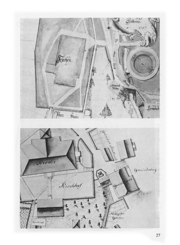 27a Plan der Kirchenumgebung, 1759. Das Haus Bim Platz steht noch nicht.