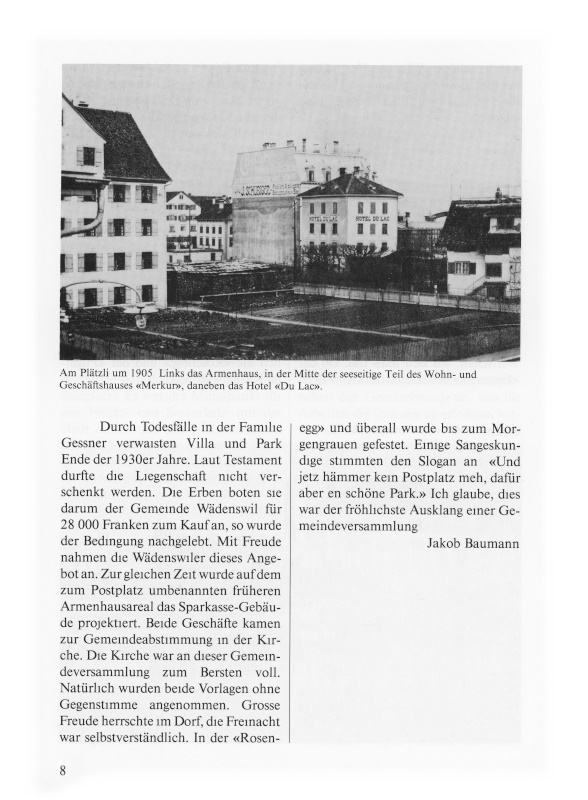Seebadanstalt. Die Viertklässler wurden erst mit Wassergewöhnungs-Übungen getummelt und durften sich dann auf dem Sonnenbad erholen. Die Grössern versuchten zu schwimmen, wobei uns der Badmeister mit Korkgürteln und Schwimmbrettern aushalf. Wer vier Runden im tiefen Abteil geschwommen war, hatte die Seeprobe bestanden, durfte mit dem Lehrer zum Floss hinausschwimmen und die Badi von aussen betrachten. Vor dem Heimgehen hatte er einen Nussgipfel zugut. Besonders beliebt war die Baderei vor und nach der