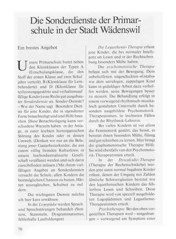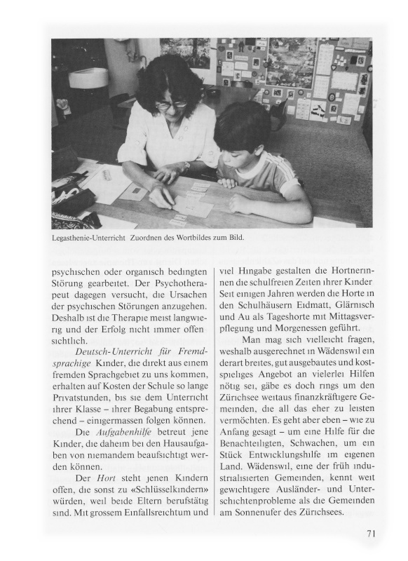 Hier nun einige ganz persönliche Bemerkungen zur Rechenschwäche. Böse Zungen behaupten, die Dyscalculie sei zusammen mit der neuen Mathematik «erfunden» worden. Es trifft sicher zu, dass die neuen, zum Teil noch etwas unübersichtlich aufgebauten Lehrmittel vor allem der Unterstufe für Kinder mit wenig beweglicher Intelligenz mehr Stolperstellen eingebaut haben als der Rechenunterricht nach herkömmlichem Muster. Einige ganz wesentliche Ursachen − hier abgesehen von den leichten hirnorganischen Störungen, die sowohl eine Legasthenie als auch eine Dyscalculie bewirken können − sehe ich jedoch in den Bedingungen unserer Gesellschaft, unserer Umwelt: