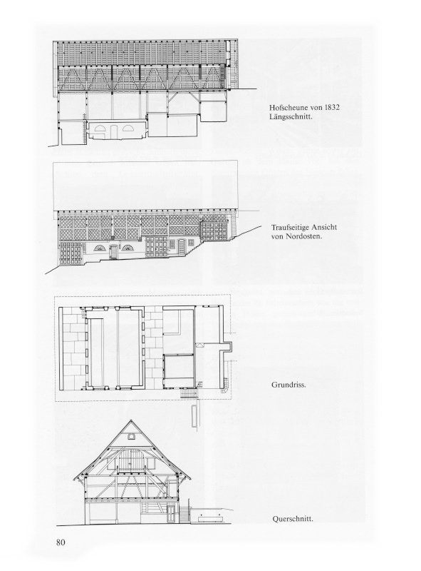 80a Hofscheune von 1832: Längsschnitt.