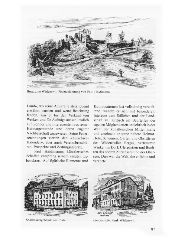 Zu den bekannten Wädenswiler Künstlern der ersten Hälfte unseres Jahrhunderts zählt Paul Haldimann, dessen häufig mit P.H. signierte Aquarelle, Ölgemälde und Federzeichnungen mit Sujets aus Wädenswil und Umgebung noch manche Stube zieren. Wer war der Schöpfer dieser Bilder?