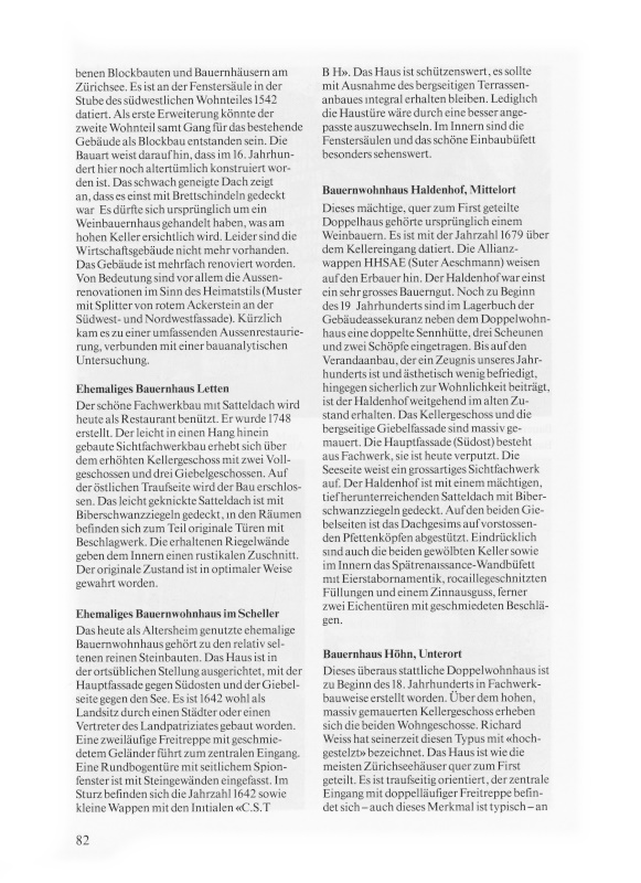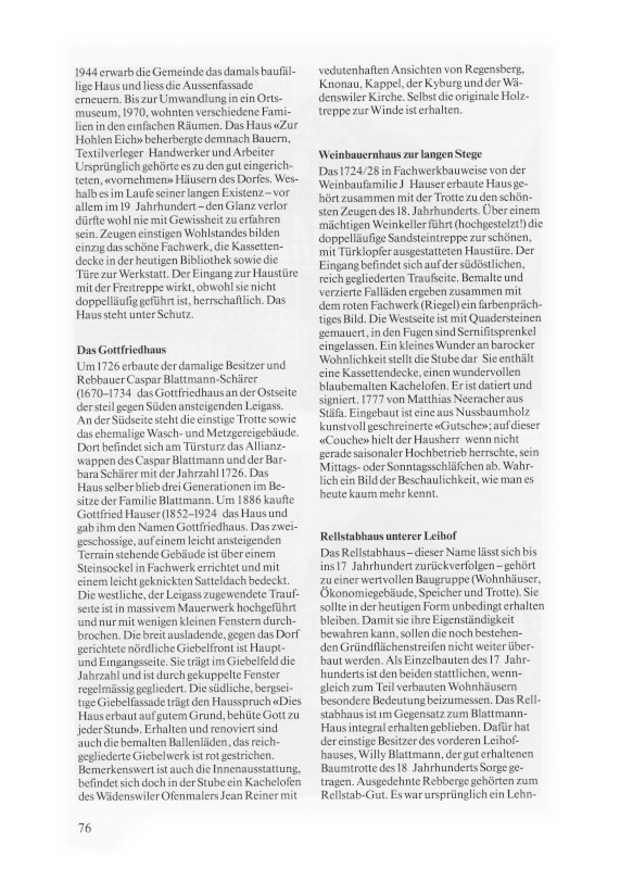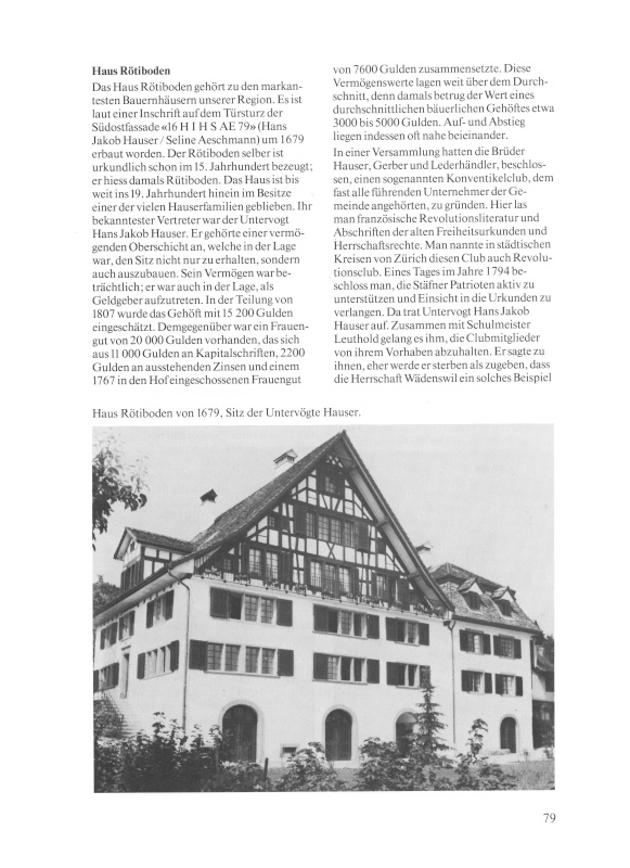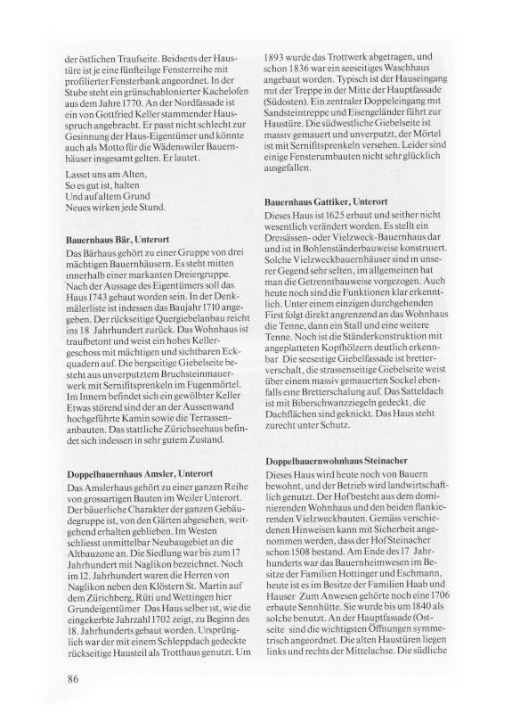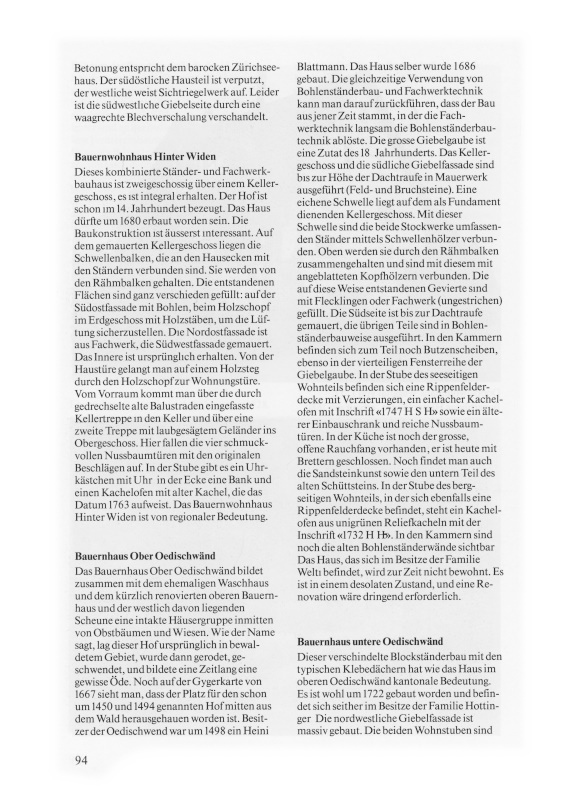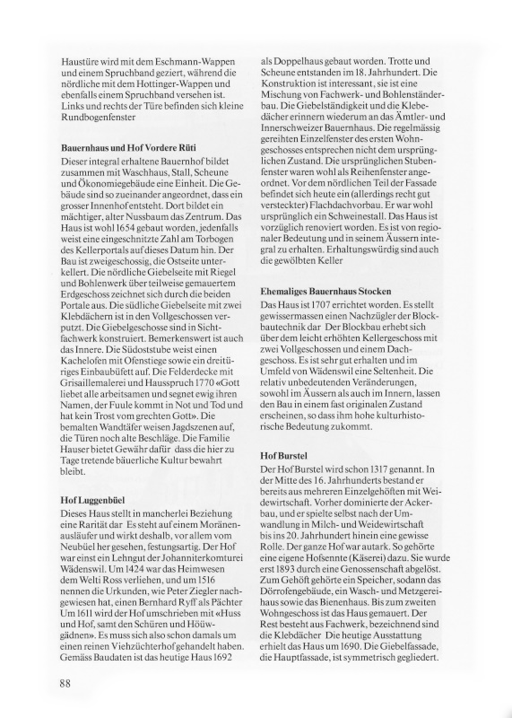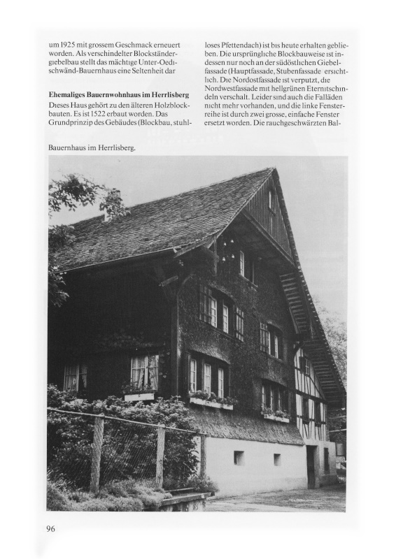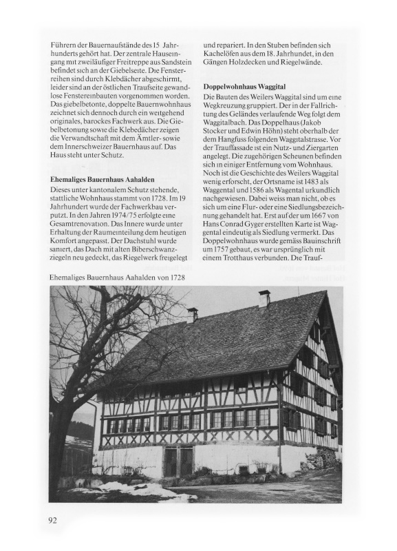 Das Jahrbuch der Stadt Wädenswil hat sich schon wiederholt mit markanten Bauernhäusern unserer Gemeinde befasst. 1985 hat Christian Renfer die Geschichte des