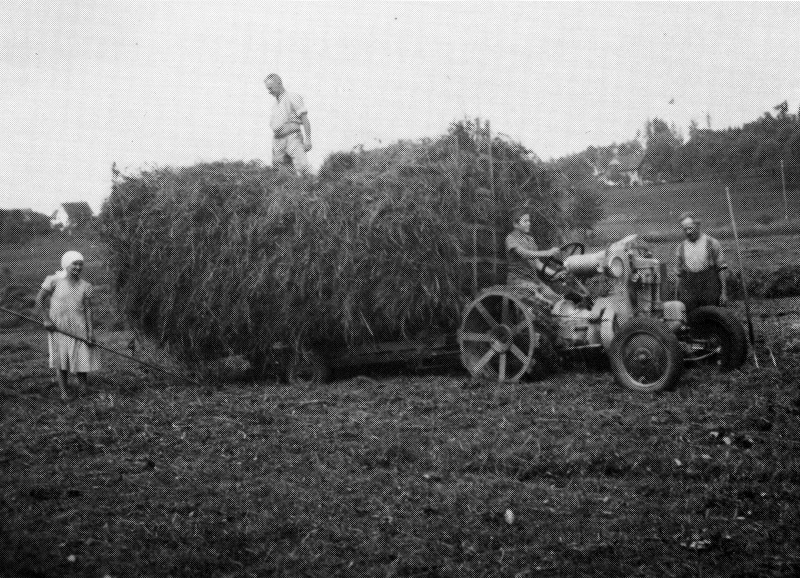 Ein weiteres Problem war die Treibstoffrationierung. Für die grossen Ackerarbeiten mussten wir jemanden anstellen, der einen Holzvergaser besass, der mit kleinen Hartholzstücken gefüttert wurde. Er lieferte recht gute Arbeit, aber nach einer langen Vorbereitungsphase. Das wenige Benzin, das wir sehr teuer Franken 1.25 kaufen konnten, musste man sparen für die kleineren Arbeiten. Wer damals schon ein Auto besass, hatte es einige Jahre stillzulegen. Vieles musste von Hand gearbeitet und transportiert werden. Kleine Veloanhänger waren begehrt für alle möglichen Arbeiten.