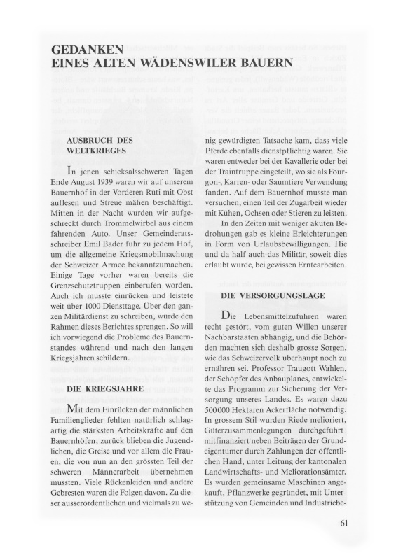 Gedanken eines alten Wädenswiler Bauern
