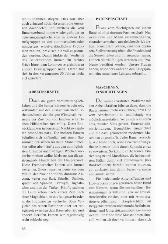 Durch die guten Verdienstmöglichkeiten und die immer kürzere Arbeitszeit, verbunden mit der Zusage von mehr Ferienwochen in der übrigen Wirtschaft, versiegte der Zustrom von landwirtschaftlichen Hilfskräften fast völlig. Diese Entwicklung war in den ersten Nachkriegsjahren besonders stark. Die meisten Bauern behalfen sich anfänglich mit einem Saisonnier, der sieben bis neun Monate bleiben sollte, aber häufig aus den unmöglichsten Gründen nach wenigen Wochen wieder heimreisen wollte. Meistens war die anstrengende Handarbeit der Hauptgrund. Diese Fremdarbeiter kamen von immer weiter her. Zuerst waren es Leute aus dem Veltlin, der Provinz Sondrio, dann aus Ancona, weiter von Bari, Brindisi, Sizilien, später von Spanien, Portugal, Jugoslawien und aus der Türkei. Häufig suchten die Leute schon nach kurzer Zeit nach einer Möglichkeit, in das Baugewerbe oder in die Industrie zu wechseln. Beim Vergleich des reinen Barlohnes oder der Arbeitszeit zwischen dem Bauernbetrieb und andern Berufen kamen wir regelmässig recht schlecht weg.