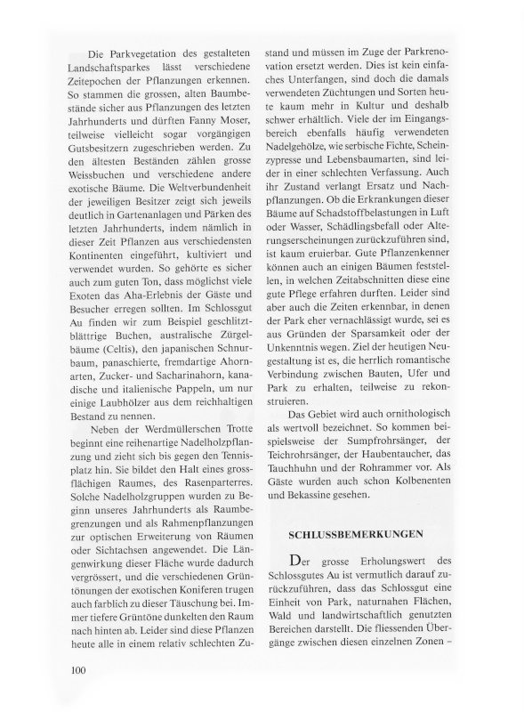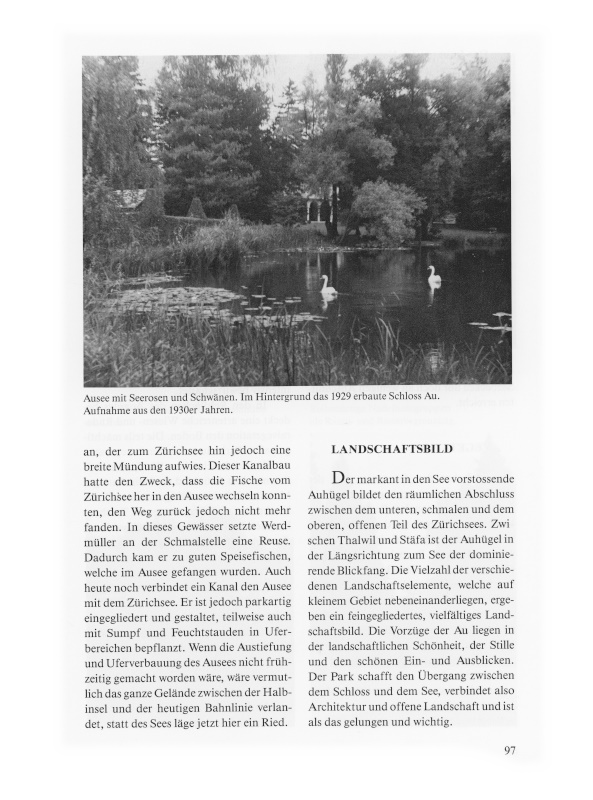 Fischer Gerold, Parkpflegewerk/Nutzungskonzept/Landschaft, Landgut Au, Zürich 1990/91.