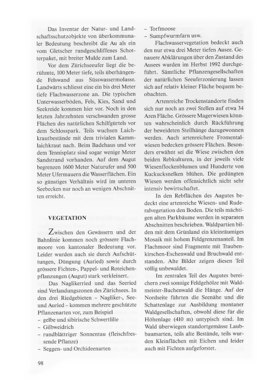 Honegger Eric, Die Bedeutung der Halbinsel Au für den Landschaftsschutz am Zürichsee. Jahresbericht 1989 des Verbandes zum Schutze des Landschaftsbildes am Zürichsee.