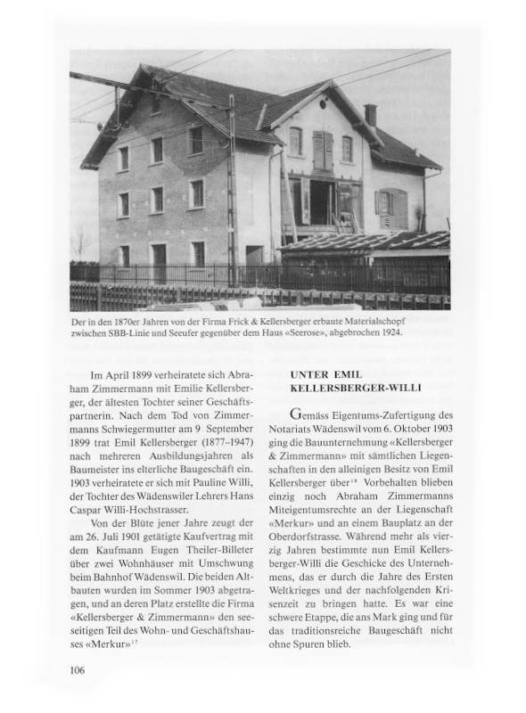 16 Hans Jakob Furrer, 125 Jahre Bauunternehmung Kellersberger+Co. Wädenswil. «Allgemeiner Anzeiger vom Zürichsee», Nr. 201 vom 29. August 1968.