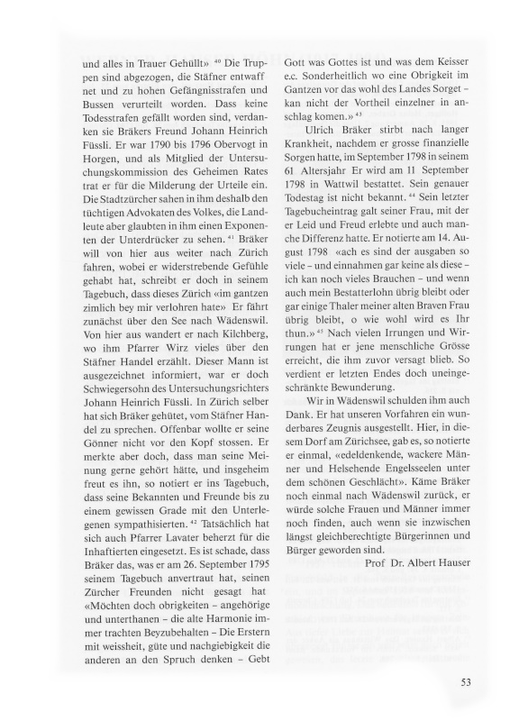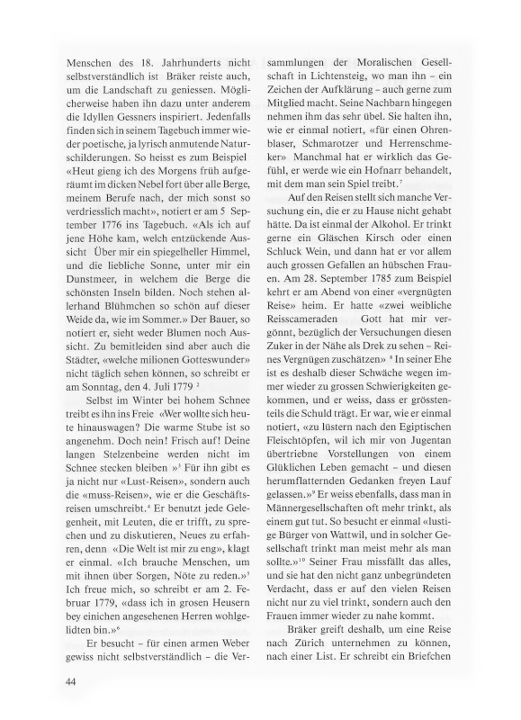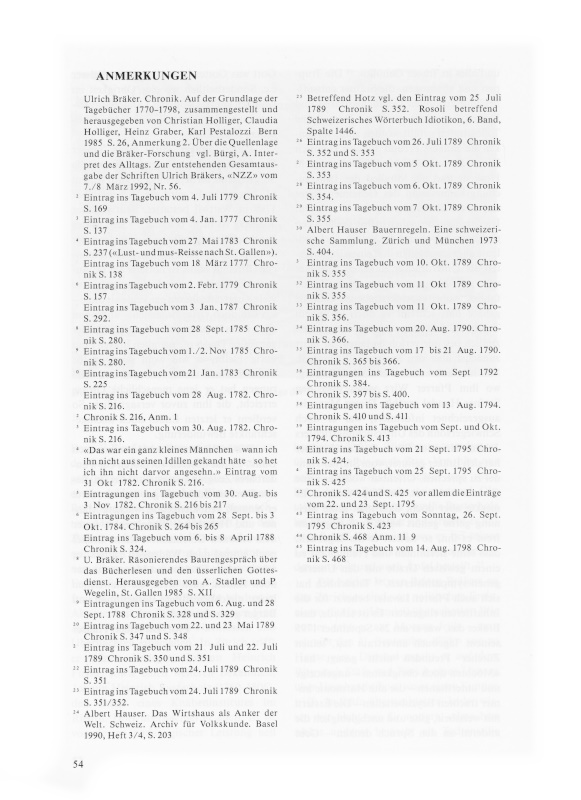 1 Ulrich Bräker. Chronik. Auf der Grundlage der Tagebücher 1770–1798, zusammengestellt und herausgegeben von Christian Holliger, Claudia Holliger, Heinz Graber, Karl Pestalozzi. Bern 1985, S. 26, Anmerkung 2. Über die Quellenlage und die Bräker-Forschung: vgl. Bürgi, A. Interpret des Alltags. Zur entstehenden Gesamtausgabe der Schriften Ulrich Bräkers, «NZZ» vom 7./8. März 1992, Nr. 56.