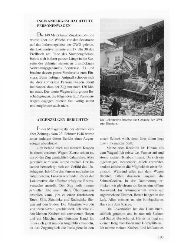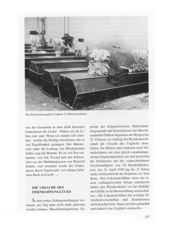Der Verteidiger des Angeklagten dankte vorerst den Geschädigten für ihren Verzicht auf Zivilansprüche gegenüber Ernst Aebi, machte auf dessen mangelnde praktische Erfahrung im Einmannsystem aufmerksam, kritisierte die Einrichtung des Stumpengeleises vor der OWG und beantragte eine Herabsetzung des Strafmasses sowie bedingte Verurteilung.