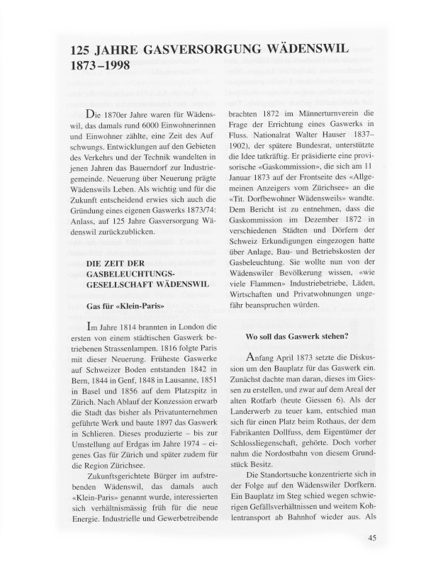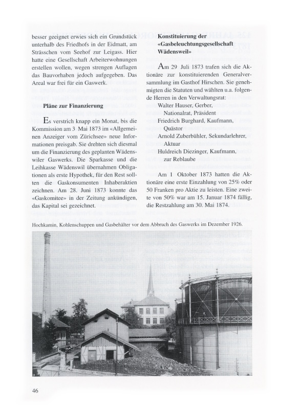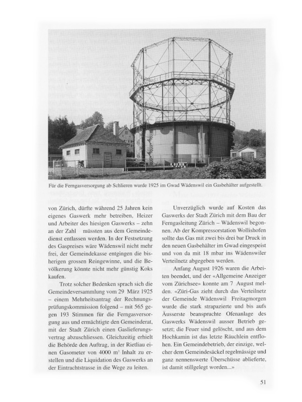 Anfang August 1926 waren die Arbeiten beendet, und der «Allgemeine Anzeiger vom Zürichsee» konnte am 7. August melden: «Züri-Gas zieht durch das Verteilnetz der Gemeinde Wädenswil! Freitagmorgen wurde die stark strapazierte und bis aufs Äusserste beanspruchte Ofenanlage des Gaswerks Wädenswil ausser Betrieb gesetzt; die Feuer sind gelöscht, und aus dem Hochkamin ist das letzte Räuchlein entflohen. Ein Gemeindebetrieb, der einzige, welcher dem Gemeindesäckel regelmässige und ganz nennenswerte Überschüsse ablieferte, ist damit stillgelegt worden ... »