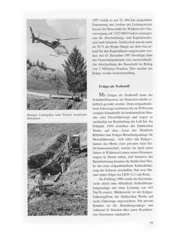 55a, b Heutiger Leitungsbau unter Einsatz modernster Hilfsmittel.