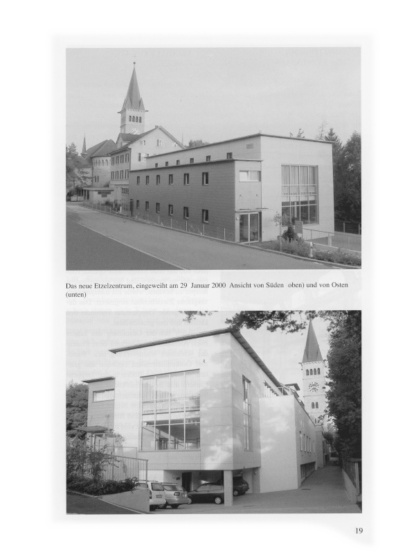 Im September 1959 weihten die Katholiken den neuen, östlich ans Pfarrhaus angebauten Etzelsaal ein. Der mit Flachdach gedeckte einstöckige Neubau, der zwei Säle und vier Zimmer enthielt, war absichtlich in klaren Formen gestaltet: Neben der neuromanischen Kirche und dem Pfarrhaus aus der Jahrhundertwende sollte nicht noch ein dritter Baukörper dominant hervortreten. Gleichzeitig mit dem Saal schuf man zwischen Pfarrhaus und Kirche einen Hof mit gedecktem Kreuzgang.
