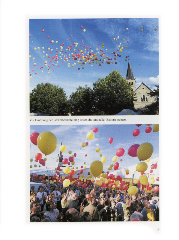 9a, b Zur Eröffnung der Gewerbeausstellung lassen die Aussteller Ballone steigen.