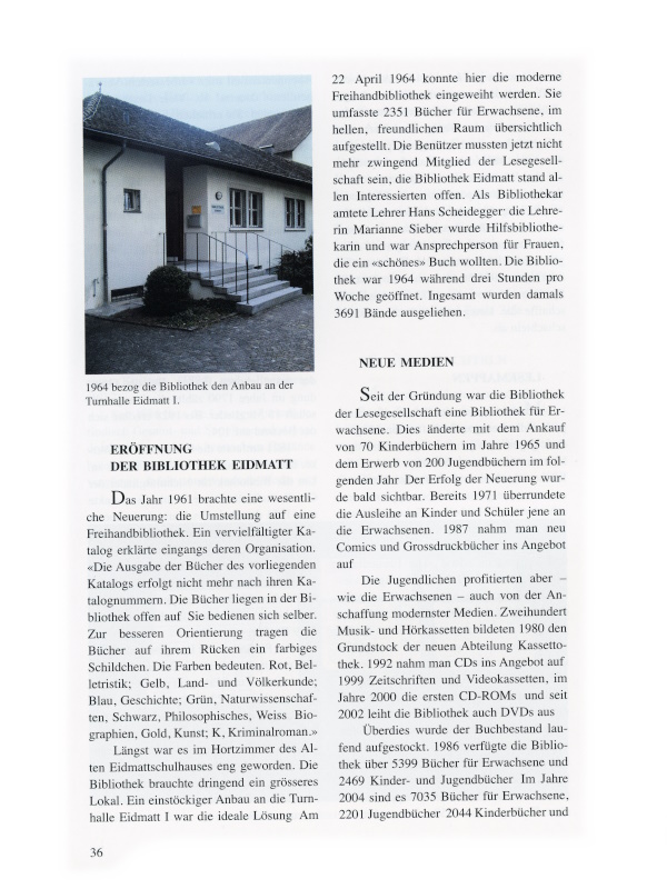 36 1964 bezog die Bibliothek den Anbau an der Turnhalle Eidmatt I.