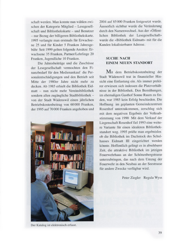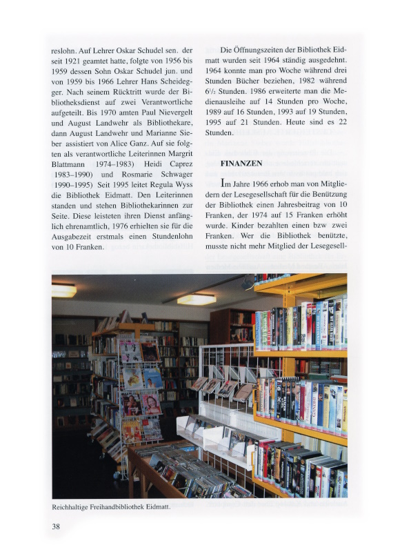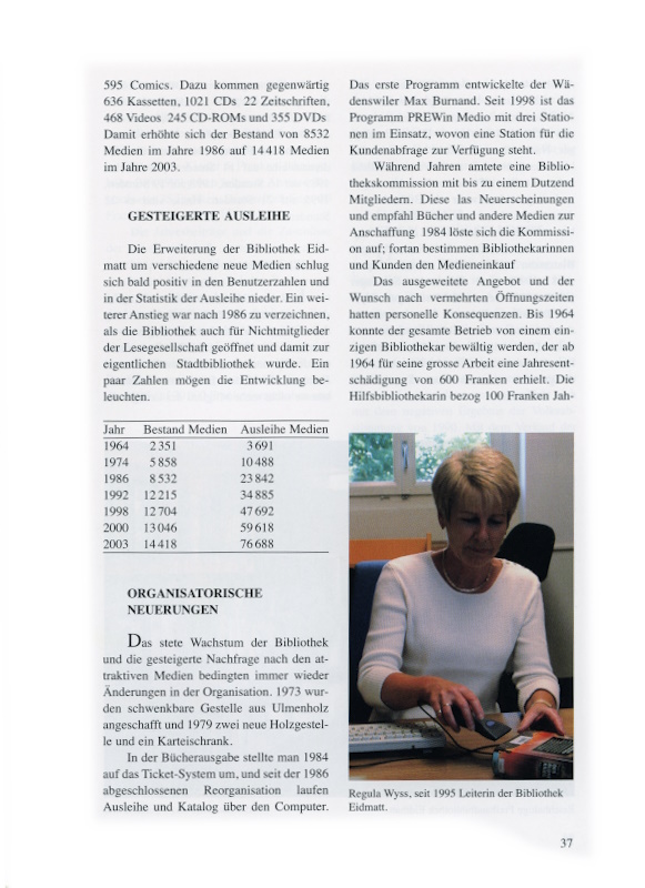37 Regula Wyss, seit 1995 Leiterin der Bibliothek Eidmatt.
