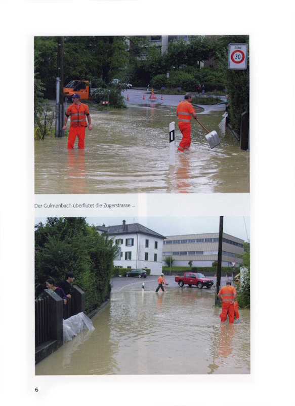 6a, b Der Gulmenbach überflutet die Zugerstrasse …