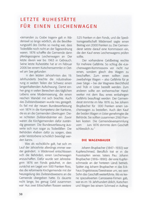 4 Zu den Biografien: Johann Frick, Gemeindebuch der beiden Zürichseeufer, Zürich 1864, S. 106 ff. Allgemein zum Wagenbau: Andres Furger, Kutschen und Schlitten in der Schweiz: Vom Streitwagen zum Stadtcoupé, Zürich 1993, S. 125–170.