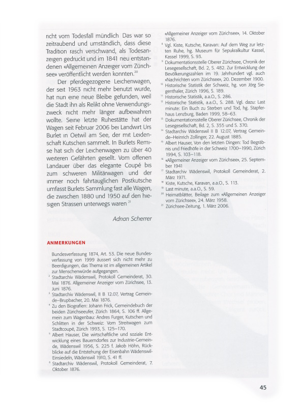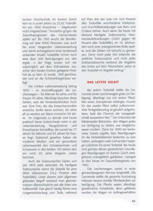 15 Albert Hauser, Von den letzten Dingen: Tod Begräbnis und Friedhöfe in der Schweiz 1700–1990, Zürich 1994, S. 103–118.