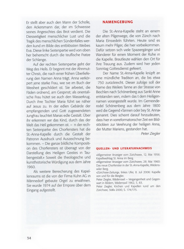 Peter Ziegler, Kirchen und Kapellen rund um den Zürichsee, Stäfa 2000, S. 174/175.