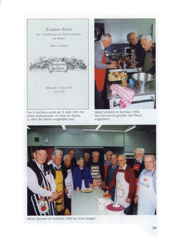 29a Der 4. Kochkurs endet am 3. April 1991 mit einem Examenessen im Haus zur Sonne, zu dem die Damen eingeladen sind.