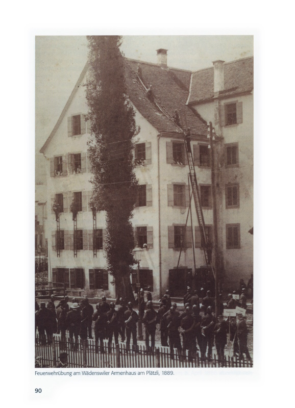 90 Feuerwehrübung am Wädenswiler Armenhaus am Plätzli, 1889.