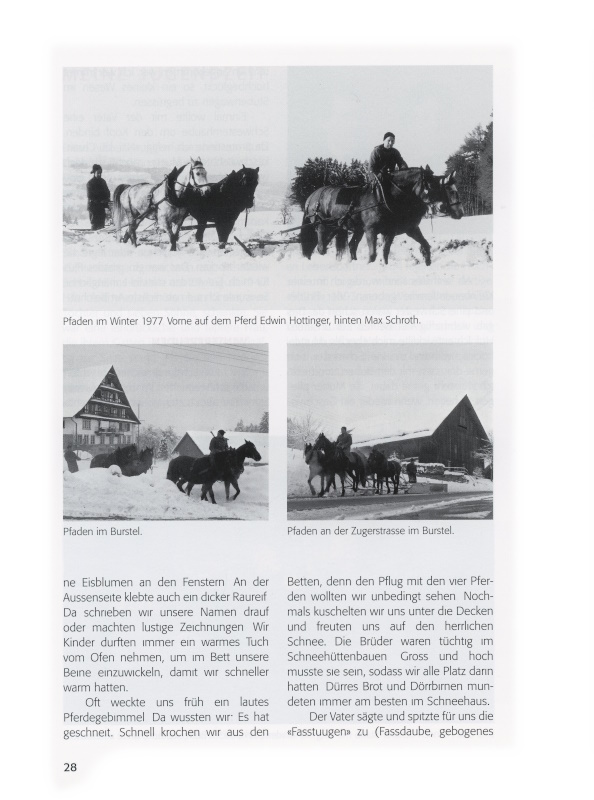 Unser kleiner Hof reichte nur für das Allernötigste. Das Milchgeld sank immer mehr, aber die Zinsen blieben gleich hoch. Wenn man Weizen säte, wollte ihn kein Müller kaufen mit der Begründung, der Amerikaweizen sei viel schöner. Brot konnten wir leider nicht selber backen, weil der Ofen keine Unterhitze abgab. Mit Bitten und Anhalten und weil wir gute Brotkunden waren, liess sich ein Müller doch erweichen.