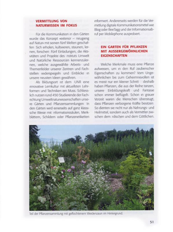 DIE GÄRTEN UND PFLANZENSAMMLUNGEN DER ZHAW IM GRÜENTAL