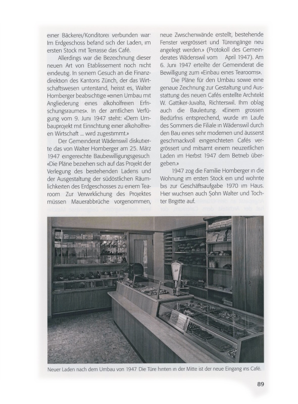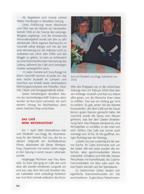 «Trotz Einführung neuer Maschinen und Öfen war der Betrieb als Handwerksbetrieb 1966 an der Grenze der Leistungsfähigkeit angelangt, und die einsetzende Personalknappheit wurde von Jahr zu Jahr drückender. Ohne eigenen Nachwuchs im Geschäft selbst drängte sich mit der Zeit eine Vermietung auf, die indessen nicht zu realisieren war, ohne den Föifer und das Weggli zu geben. So kam es schliesslich zu einer branchenfremden Vermietung des Ladens, während das Café vom bisherigen Inhaber weitergeführt wird.»