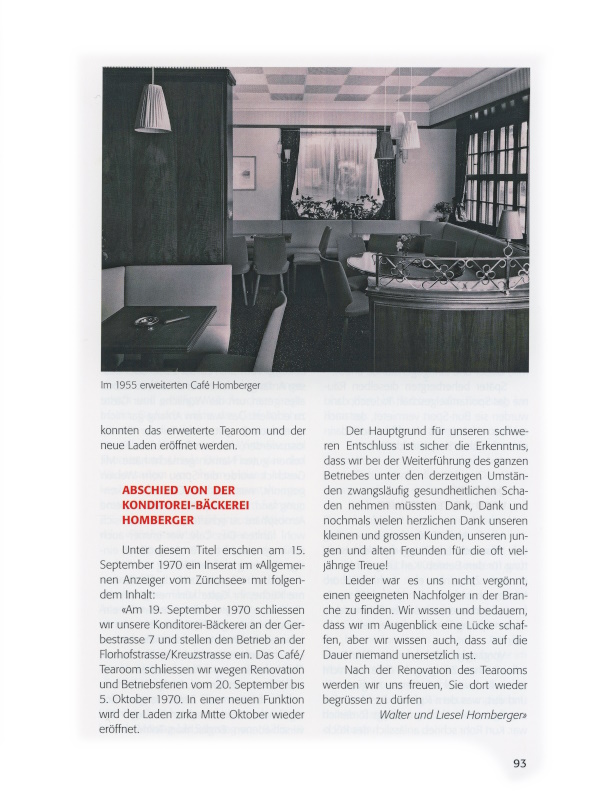 «Am 19. September 1970 schliessen wir unsere Konditorei-Bäckerei an der Gerbestrasse 7 und stellen den Betrieb an der Florhofstrasse/Kreuzstrasse ein. Das Café/Tearoom schliessen wir wegen Renovation und Betriebsferien vom 20. September bis 5. Oktober 1970. In einer neuen Funktion wird der Laden zirka Mitte Oktober wieder eröffnet.