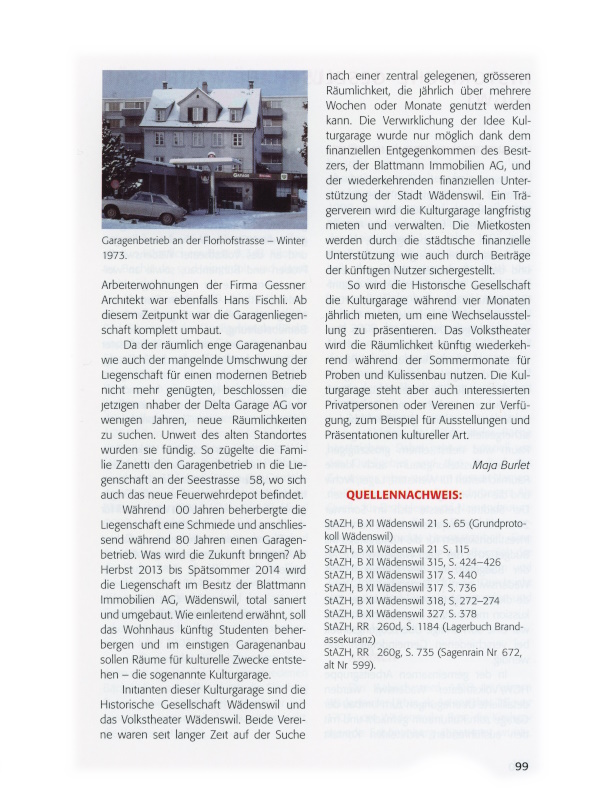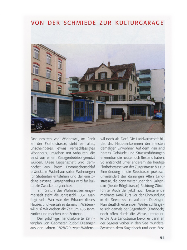 Fast inmitten von Wädenswil, im Rank an der Florhofstrasse, steht ein altes, unscheinbares, etwas vernachlässigtes Wohnhaus, umgeben mit Anbauten, die einst von einem Garagenbetrieb genutzt wurden. Diese Liegenschaft wird demnächst aus ihrem Dornröschenschlaf erweckt. Im Wohnhaus sollen Wohnungen für Studenten entstehen und der einstöckige einstige Garagenanbau wird für kulturelle Zwecke hergerichtet.