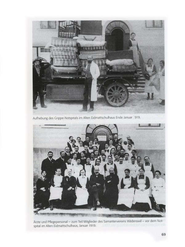 Nachdem in Wädenswil die Spanische Grippe aufgetreten war, erteilte der Gemeinderat dem Samariterverein Wädenswil am 14. Oktober 1918 den Auftrag, im Alten Eidmattschulhaus – der Schulbetrieb war eingestellt – ein Notspital für Grippekranke einzurichten und zu betreiben. Der zum Leiter bestimmte Präsident Hans Häberling suchte sofort mit einem Aufruf im «Allgemeinen Anzeiger vom Zürichsee» das benötigte Pflegepersonal. Das Echo war enttäuschend: «Der Erfolg war derart, dass ich den Glauben und das Zutrauen an meine Sektion verlor», notierte Häberling später. Doch weitere Anstrengungen zahlten sich aus. An verschiedenen Orten wurden zwanzig Betten aufgetrieben, dazu kamen Tragbahren und Sanitätsmaterial aus dem Vereinsbestand. Am 15. Oktober trafen die beiden ersten Patienten ein. Das Spital war bis am 25. Januar 1919 in Betrieb. 70 im Pflegedienst beschäftigte Personen betreuten 102 männliche und 99 weibliche Patienten, von denen neun starben. Insgesamt verzeichnete man im Notspital 4189 Pflegetage.