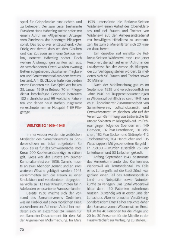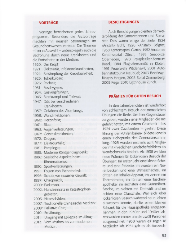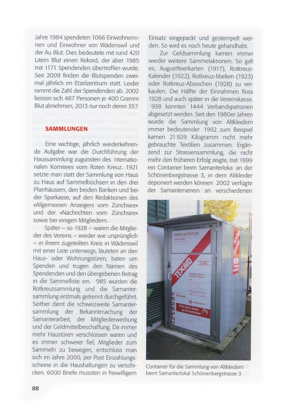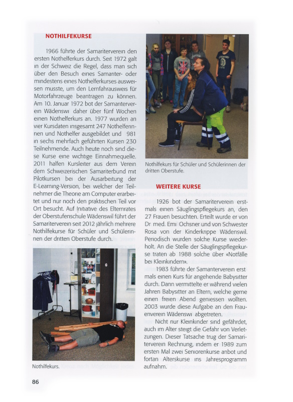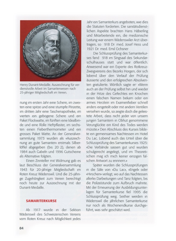 Der Samariterverein Wädenswil feiert am 29. November 2014 das 125-jährige Bestehen: Anlass, auf die wechselreiche Vereinsgeschichte zurückzublicken. Als Grundlage dienen die Jahresberichte und Protokolle, die im mustergültig geordneten Vereinsarchiv lückenlos erhalten sind.