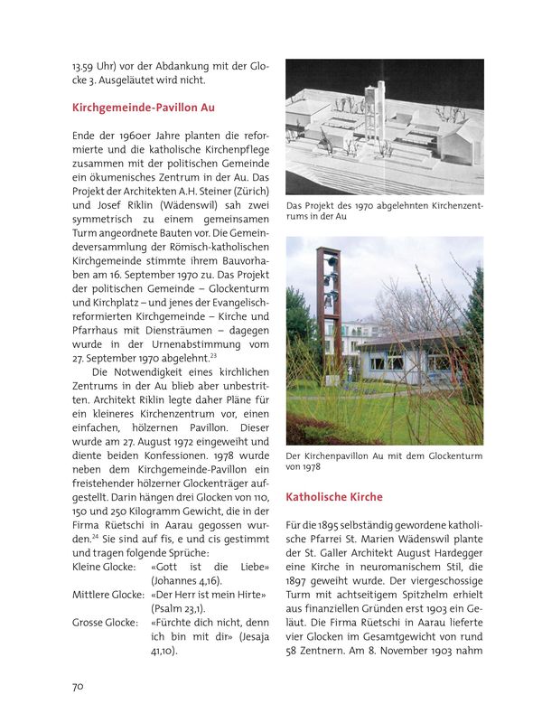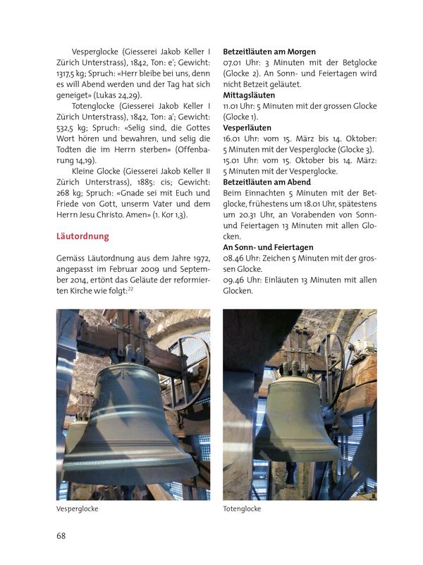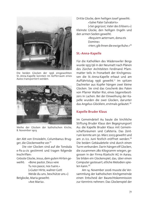 Damit verfügte Wädenswil über eines der ersten Systeme des mechanischen Glockenantriebs. 1954 ersetzte man den Gesamtantrieb durch Einzelantrieb.21 Seit 1974 wird der Einsatz automatisch gesteuert.