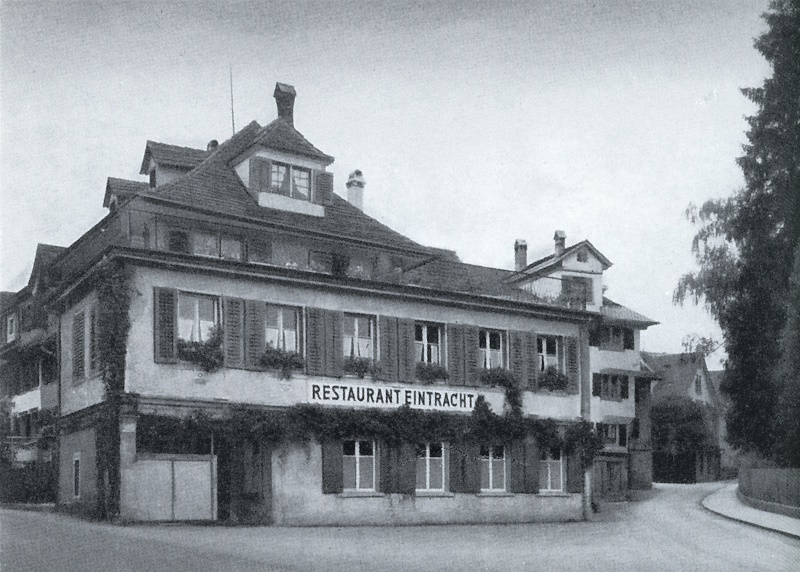 Der 1851 gegründete Männerchor trägt noch immer den Namen «Eintracht». Im Jahre 1968 wurde der Wirtschaftsbetrieb aufgegeben und das Haus einer neuen Nutzung zugeführt. Ältere Einwohner erinnern sich noch an die einstige Wirtschaft, wie sie hier abgebildet ist. Das markante Gebäude mit Walmdach, Eidmattstrasse 2, der Kopfbau der Häuserreihe entlang der Eintrachtstrasse, dürfte im Kern bis ins 17. Jahrhundert zurückreichen.