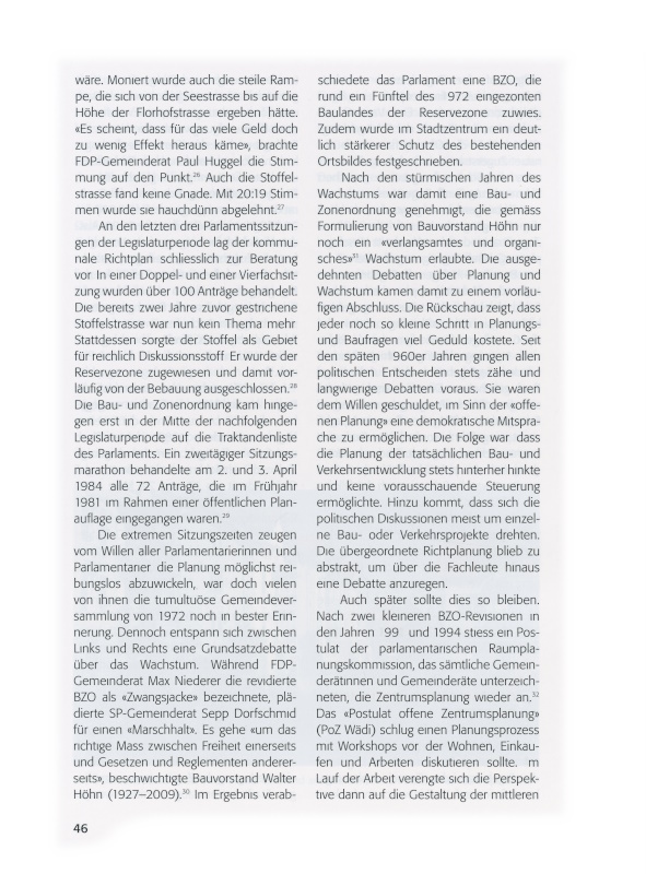 18 AAZ, 6.9.1973. Als externe Berater zugezogen wurden der Finanzexperte Hans-Caspar Nabholz, der Verkehrsplaner Peter Niederhauser und der Ortsplaner Hugo Wandeler.