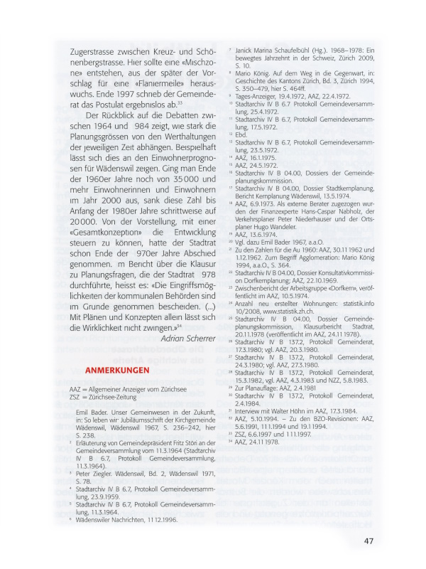 1 Emil Bader, Unser Gemeinwesen in der Zukunft, in: So leben wir: Jubiläumsschrift der Kirchgemeinde Wädenswil, Wädenswil 1967, S. 236-242, hier S. 238.