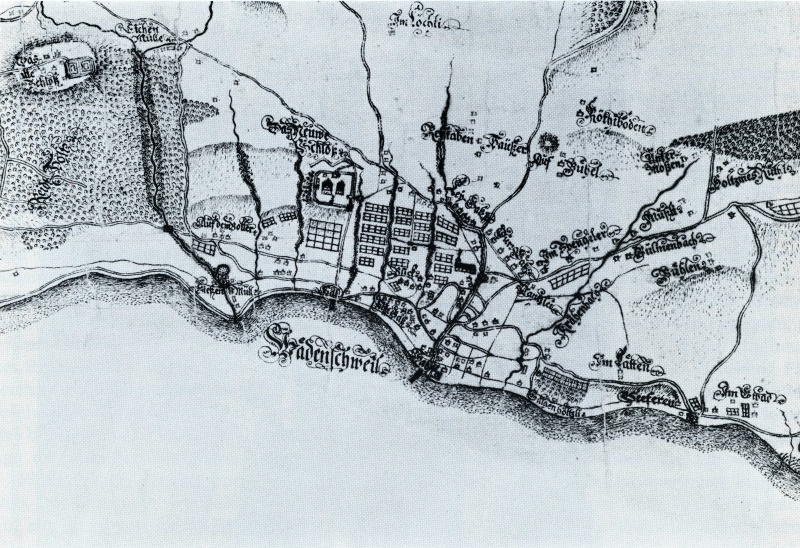 Um die Mitte des 16. Jahrhunderts amtete auf der Badestube am Plätzli der Scherer Lienhart Schinz. Sein Geschäft dürfte sich eines guten Zulaufs erfreut haben, denn ausser seiner Badestube gab es zu jener Zeit innerhalb der Herrschaft Wädenswil nur noch an der Hürschengasse in Richterswil einen Scherer und Barbier. Wie lange die Badestube am Plätzli in Betrieb war, entzieht sich unserer Kenntnis. Im Grundprotokoll wird jedoch schon 1654 von der «alten Bathstuben» gesprochen36. Der Eigentümer der Liegenschaft, Hans Jakob Keller, scheint sich nicht mehr als Barbier betätigt zu haben: er übte das Schmiedehandwerk aus. Beim Verkauf der Güter an Jakob Epprecht im Brachmonat 1673 wird die Badestube nicht mehr erwähnt, da sie offenbar inzwischen eingegangen war. Dafür gab es seit der Mitte des 17. Jahrhunderts in andern Dorfteilen Badestuben, so etwa 1683 jene von Barbier Heinrich Schärer an der Türgass. Auch im Keller der «alten Farb» an der Gerbestrasse war 1683 eine Badestube eingerichtet37.