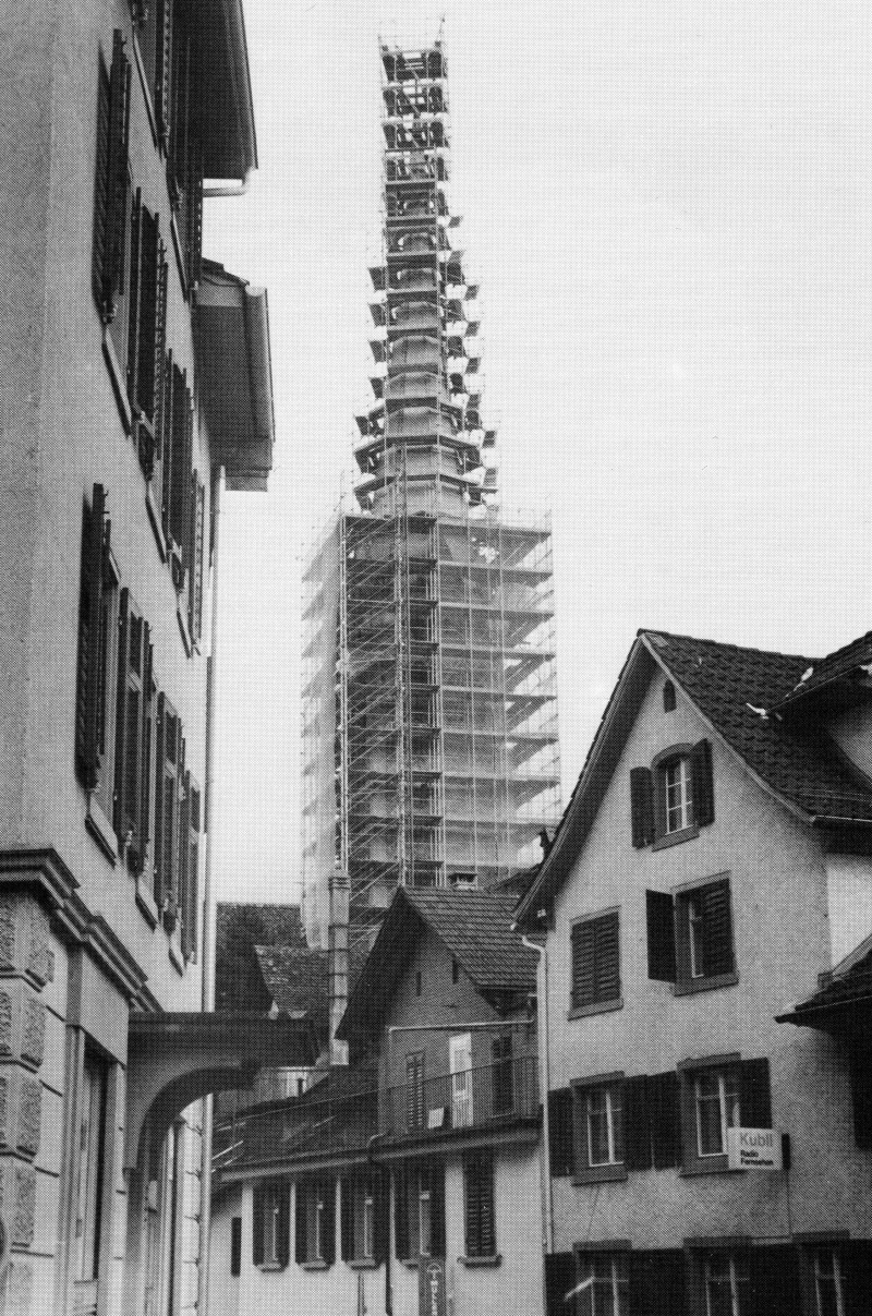 reformierten Kirche Wädenswil hat begonnen. Der Kirchenbau ist eingerüstet, in den nächsten Tagen wird das Turmgerüst aufgebaut.