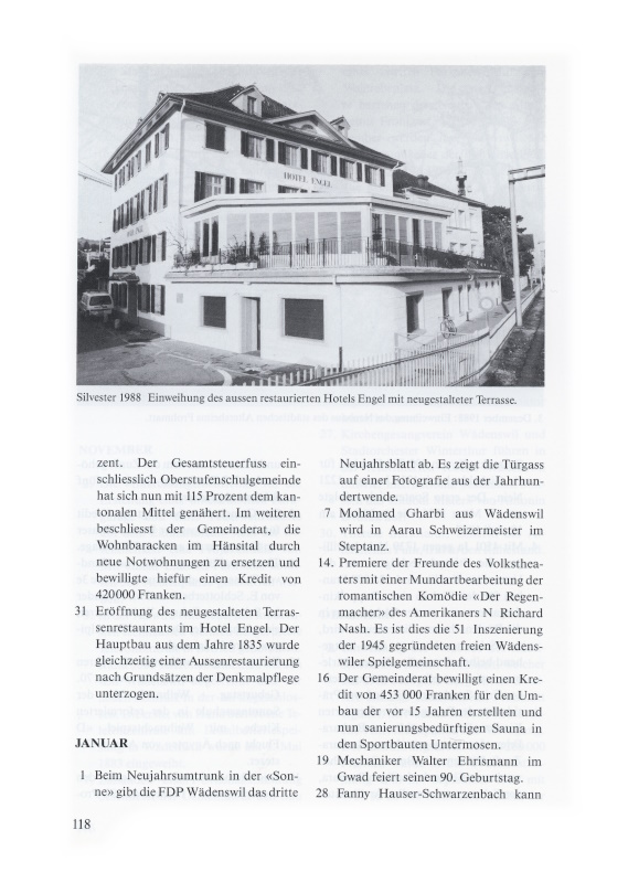 13. Die Wirtschaft zum Letten wird im 1748 erstellten ehemaligen Weinbauernhaus unter der neuen Leitung von Elsbeth und Leo Wildhaber wieder eröffnet.