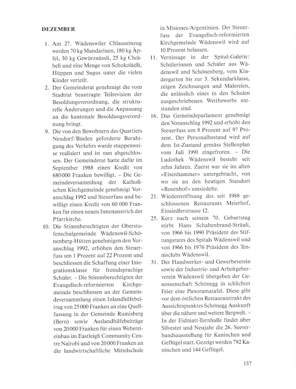 22. Hans Walder-Furrer, Primarlehrer in Wädenswil von 1939 bis 1979, stirbt im 78. Altersjahr.