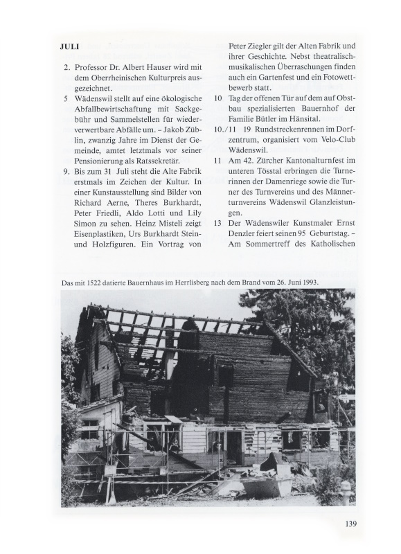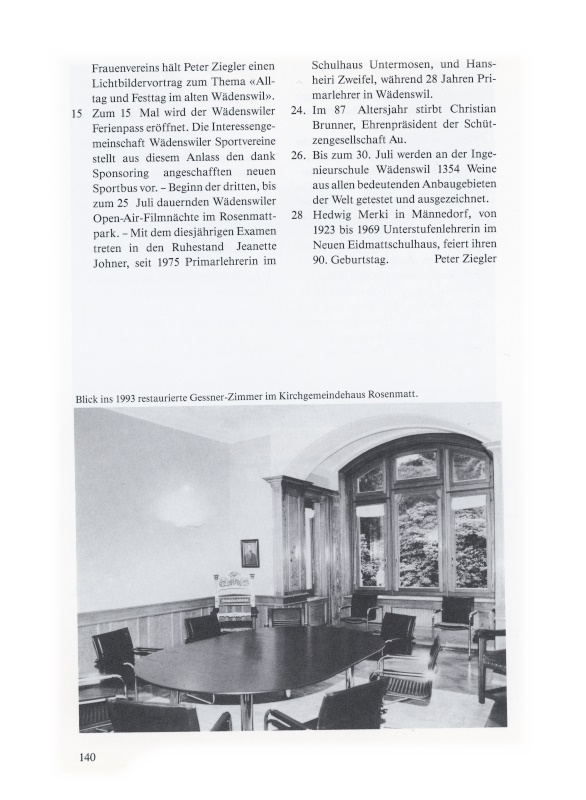20. Walter Blickenstorfer-Fuss, früher Steuersekretär der Gemeinde Wädenswil, stirbt in der Nacht nach seinem 80. Geburtstag.