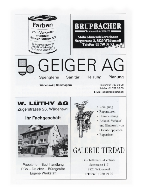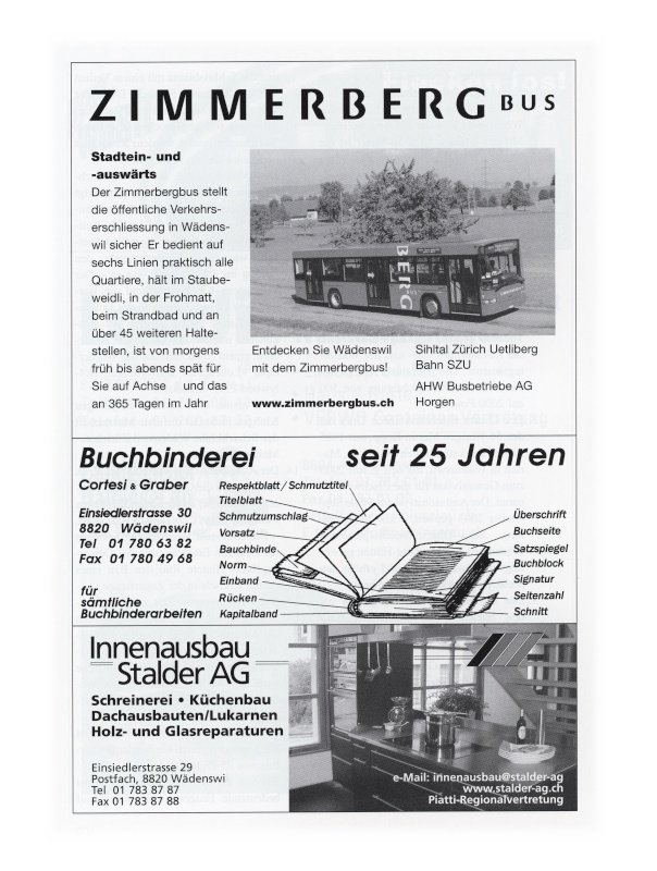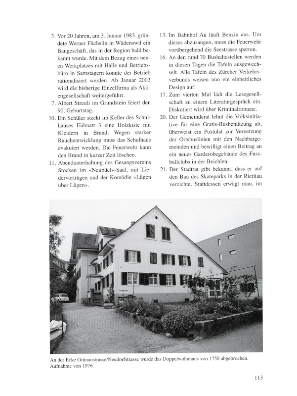 Ehrsam AG in Reichenburg, einst bedeutende Feuerwehrgerätefabrik auf dem Stampf-Areal an der Zugerstrasse 52 in Wädenswil, muss mangels Aufträgen die Bilanz deponieren. – Die Wädenswiler Firma Buchmann Metallbau AG besteht seit 75 Jahren. 1927 übernahm Johann Buchmann, Grossvater und Urgrossvater der heute tätigen Generationen, eine kleine Schlosserei an der Türgass.