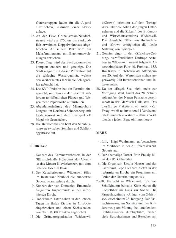5. Das kantonale Verwaltungsgericht hat den Entscheid der kantonalen Baurekurskommission bestätigt: Neben der Graströchni Beichlen im Wädenswiler Berg darf keine Grasfermentierungsanlage erstellt werden. Das Projekt ist damit gestorben. – Die 1945 gegründete Genossenschaft
