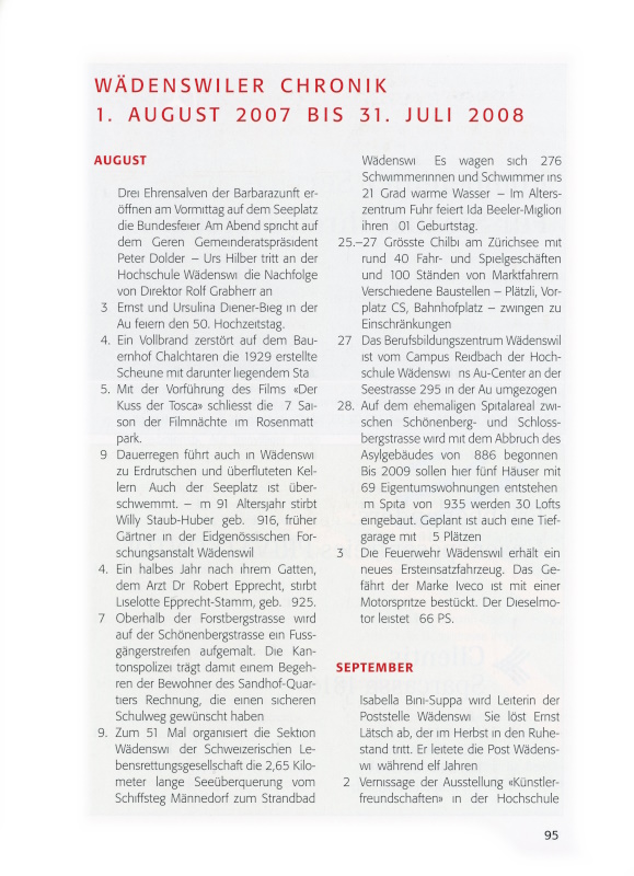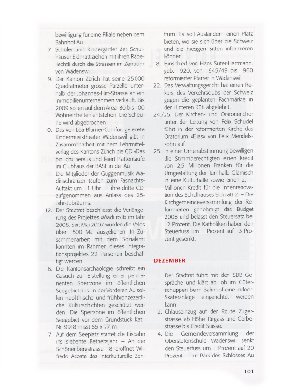 23. Der Gemeinderast genehmigt die Rechnung 2007 und den Geschäftsbericht des Stadtrates für 2007. Mit einem Ertragsüberschuss von 4,2 Millionen Franken gegenüber einem budgetierten Defizit von 6 Millionen Franken wurde 2007 eine Verbesserung von über 10 Millionen Franken erreicht. Gefordert werden im Rat eine künftige Steuersenkung sowie eine realistischere Budgetierung.