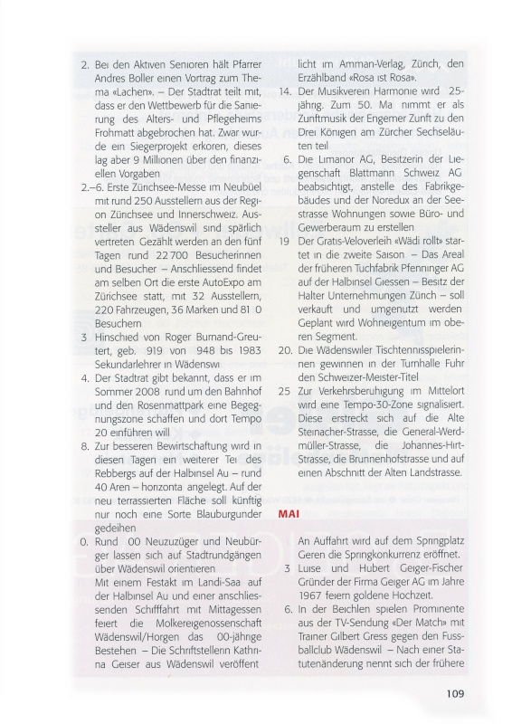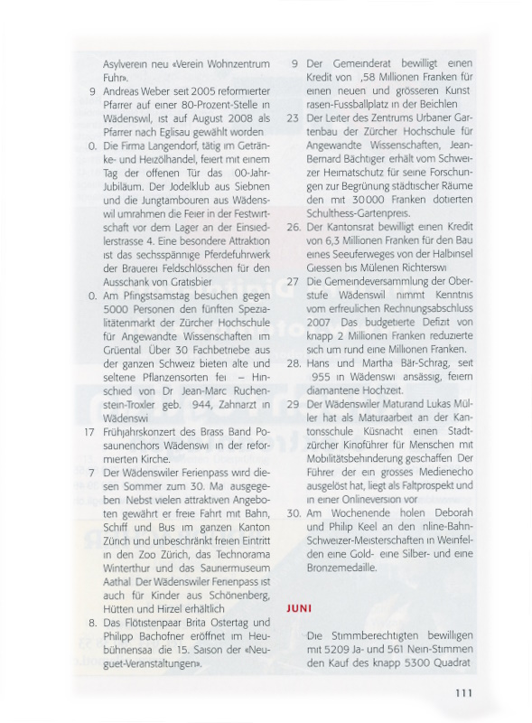 20. Am 1. Mai 1990 wurde Walter Lehmann von der Waldmeier Garage AG als Buschauffeur in Wädenswil angestellt. Heute dreht er in Wädenswil die letzten Busrunden, dann geht er in Pension. – Rund 80 Jugendliche des Jahrgangs 1990 erscheinen zur Jungbürgerfeier im