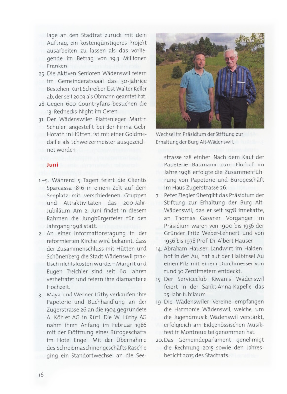 16 Wechsel im Präsidium der Stiftung zur Erhaltung der Burg Alt-Wädenswil.