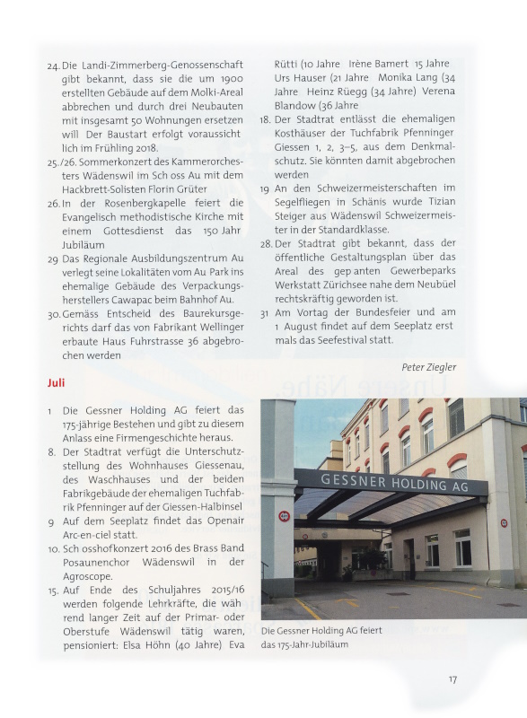 17 Die Gessner Holding AG feiert das 175 Jahr-Jubiläum.